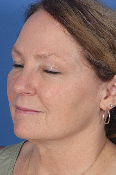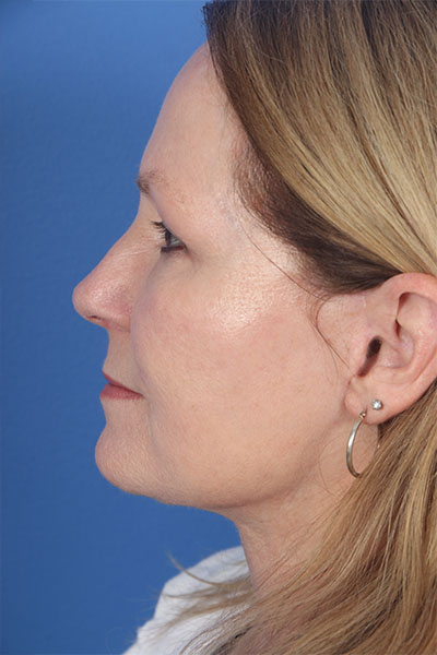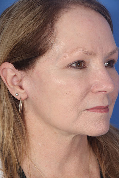 This patient in her early 60s underwent a deep plane cheek and neck lift with buccal fat removal, platysmaplasty, platysmal myectomy, and removal of preplatysmal fat with Dr. Guy. In the after photo you can see how great her neck and jawline looks yet she still looks completely natural.